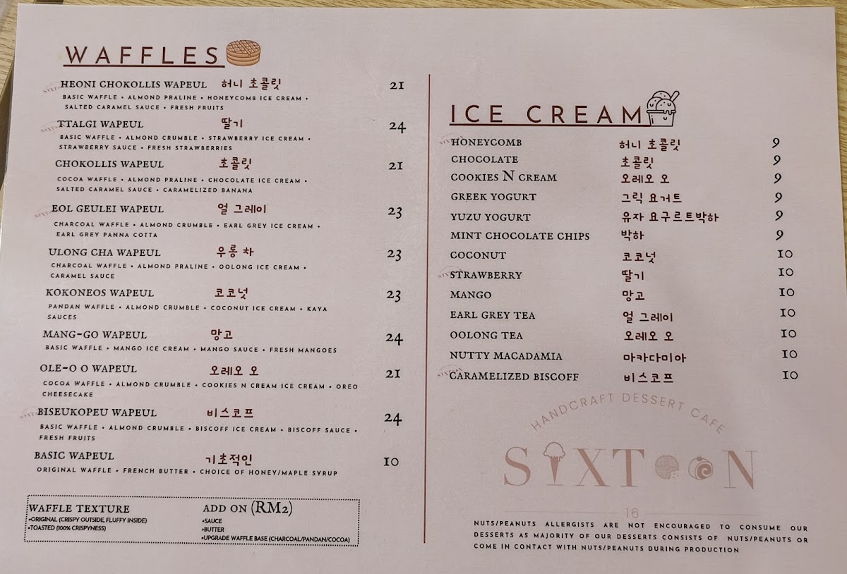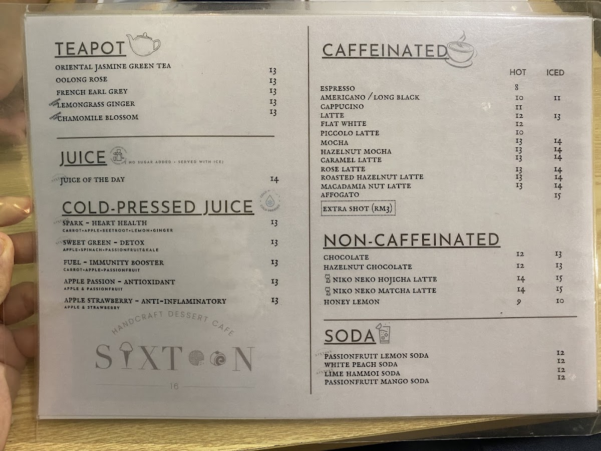 Sixteen Handcraft Dessert Cafe @ Kepong Menjalara Menu
